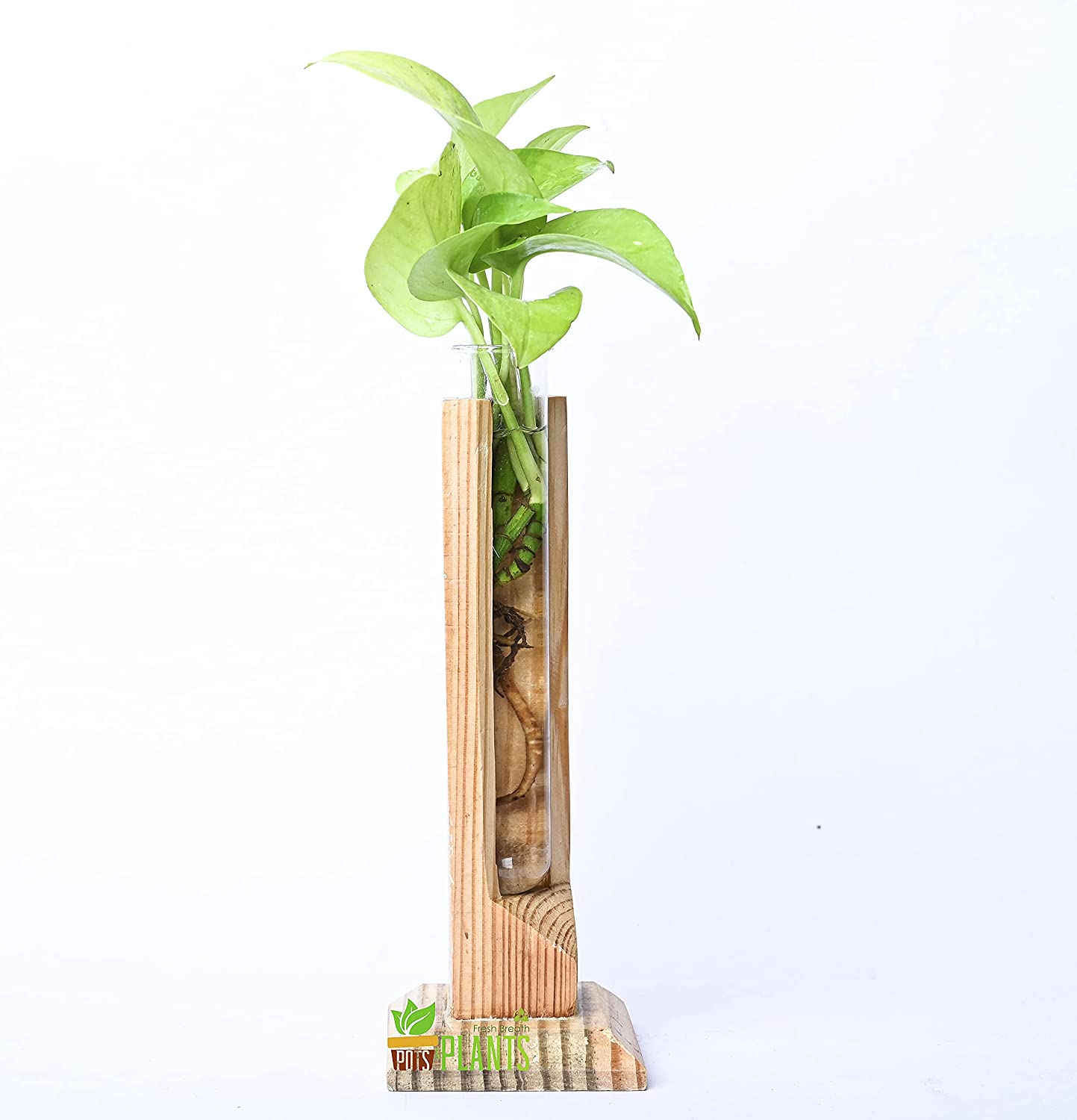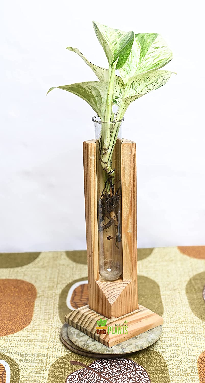 - Creative and unique wooden test tube rack including three transparent test tubes. Displays fresh flowers, small plants for home decor in livingroom, bedroom, restroom, dinning room, kitchen, or office.