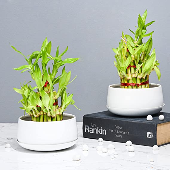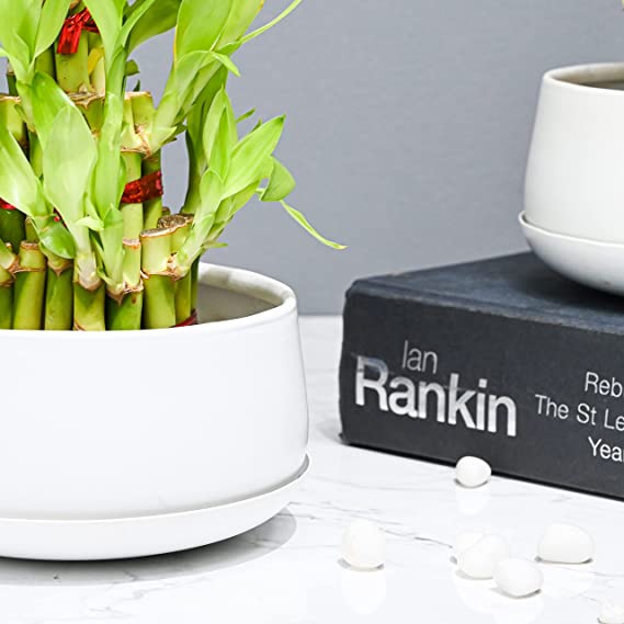 - Drainage plate and white polished stones for garden decor. The planter has drain holes ensuring the roots are rot free. No worries about the messy table as the tray collects the water.