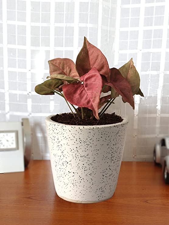 As a young plant, its leaves start out heart-shaped, then gradually become arrowhead-shaped as it matures. Its dark-green leaves have silvery white, green or pink or cream variegation, making this a decorative and popular house plant.